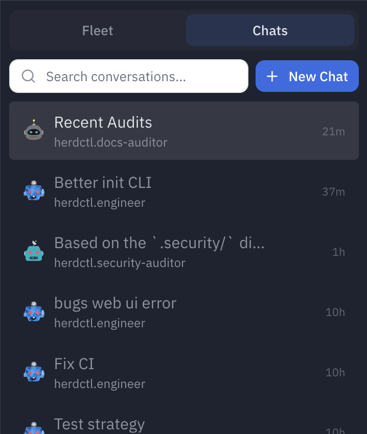 At the moment the web chat is fairly primitive, so for any medium-heavy tasks I'm still using Claude Code directly. But for simple tasks and for interrogation or ideation or conversations about architecture, the herdctl web UI is already my go-to because I tend to keep dozens of conversations going at once and there's only so far zellij can help manage all those terminal tabs with Claude Code running in them.